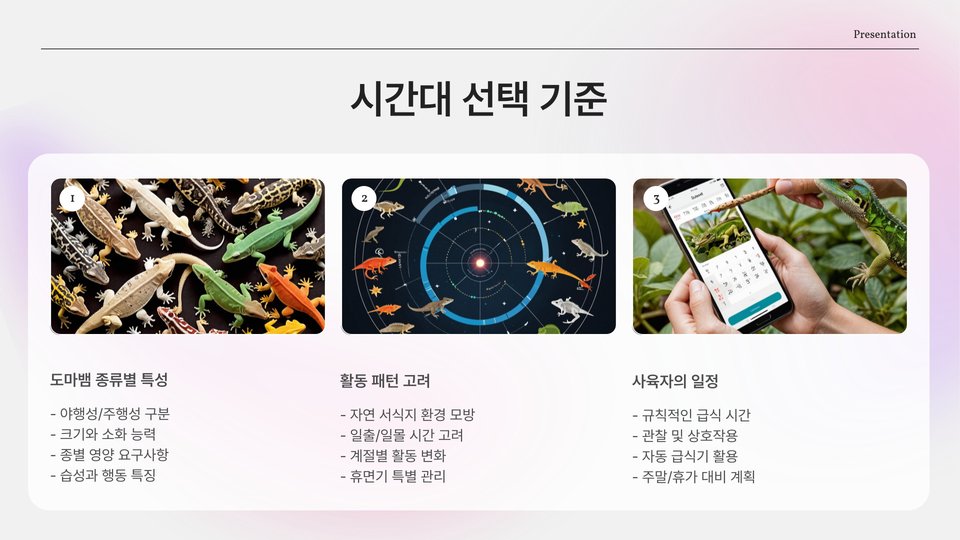 첫 번째 기준: 도마뱀의 종류에 따른 밥주는 시간