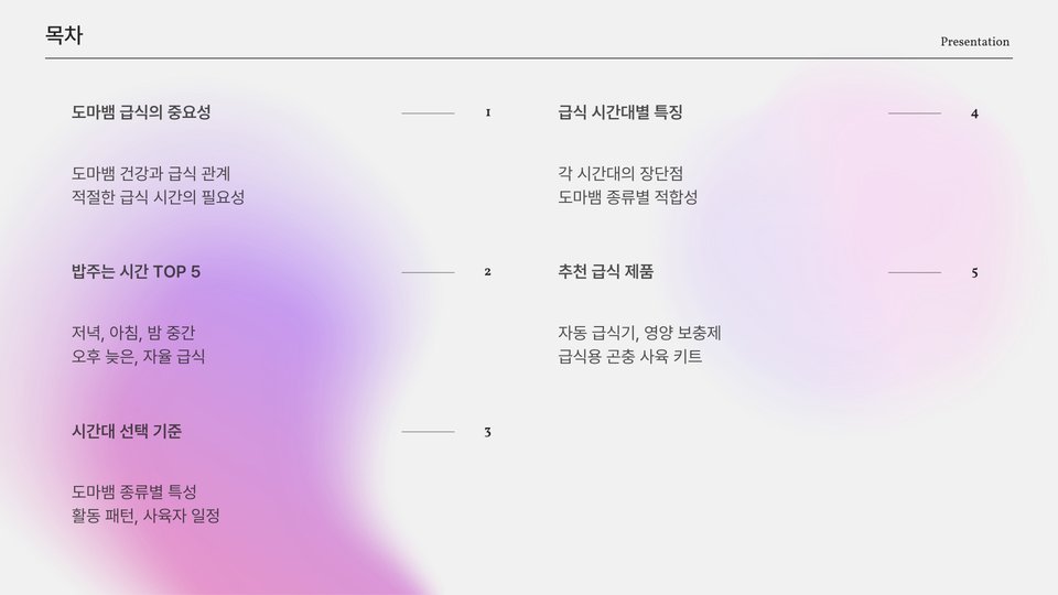 도마뱀에게 적절한 밥주는 시간은 그들의 건강과 체형 발달에 직접적인 영향을 미칩니다. 이를 위해서는 도마뱀의 종류와 환경, 나이와 크기를 고려하여 알맞은 방식으로 음식을 제공해야 합니다. 각 도마뱀의 특성을 잘 이해하고 적절한 식사 주기를 설정하는 것이 매우 중요합니다.
