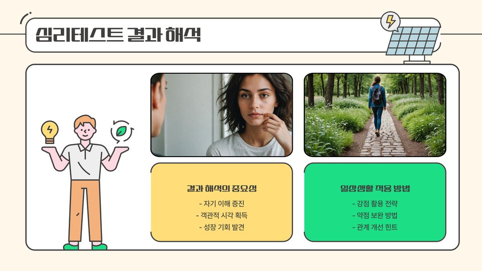 중요 팁: 테스트 결과는 절대적인 것이 아니므로, 결과를 통해 자신을 힐링하고 성장하는 기회로 삼는 것이 중요합니다.