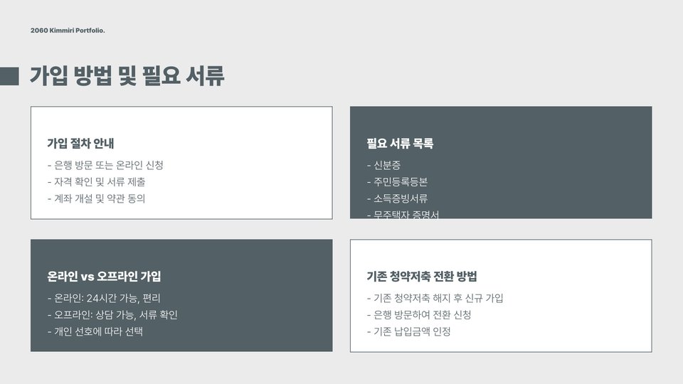 - 온라인 및 오프라인 신청이 가능하며, 필요한 서류를 미리 준비해야 합니다.