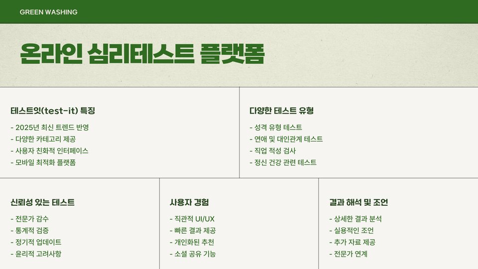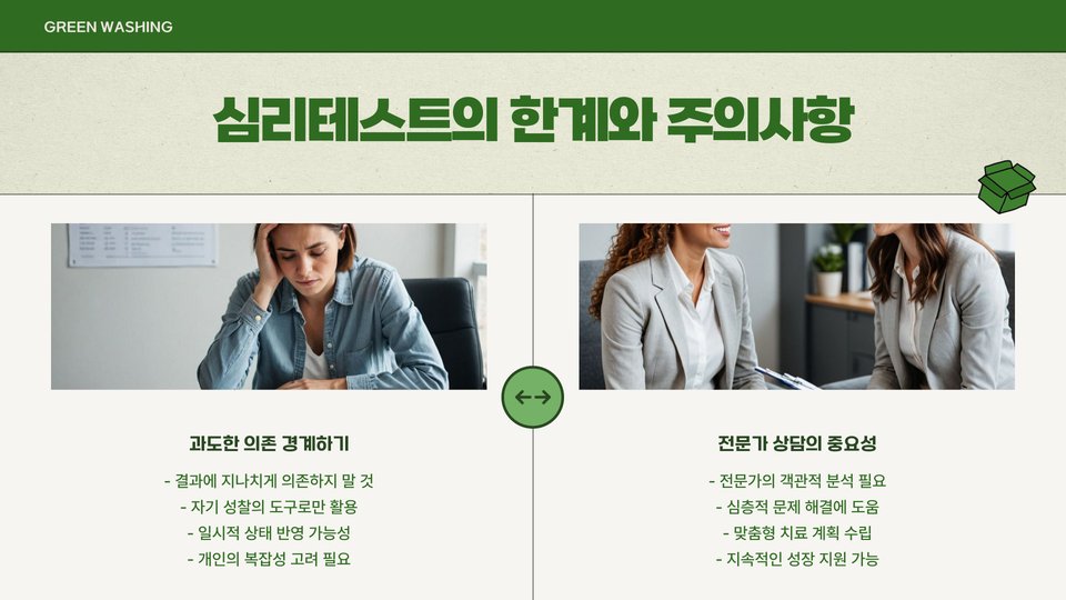 - 심리테스트는 자기 인식을 높이는 데 유용하다.