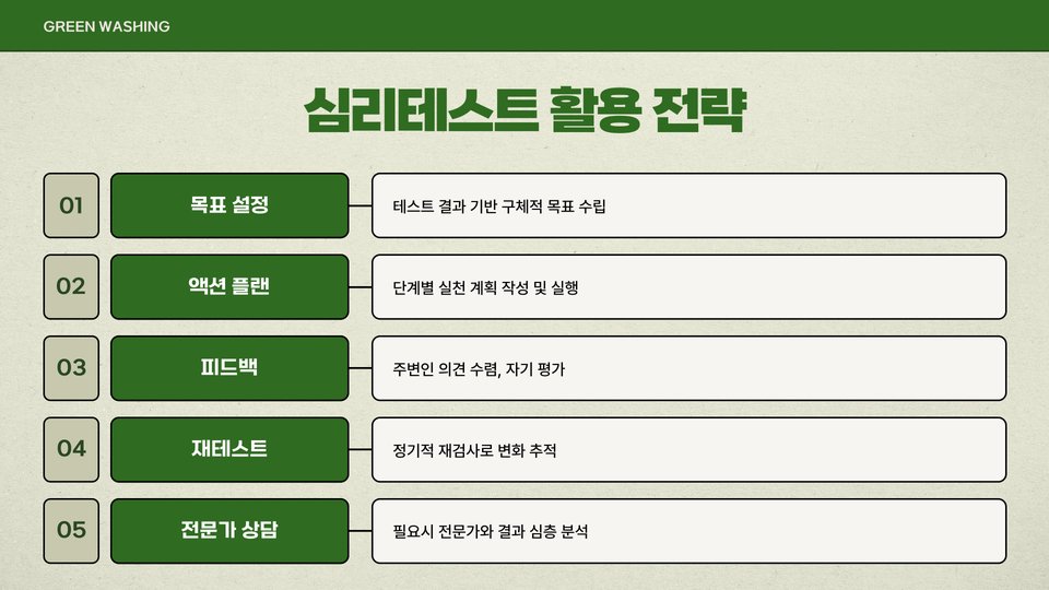 또한, 심리테스트를 통해 파악한 결과는 자신이 필요한 변화의 원인을 찾는 데 기여할 수 있습니다. 이 과정을 통해 사람들은 자신에게 필요한 정보와 인사이트를 얻습니다. 결국, 자신을 아는 것은 더 나은 삶의 질로 이어집니다.