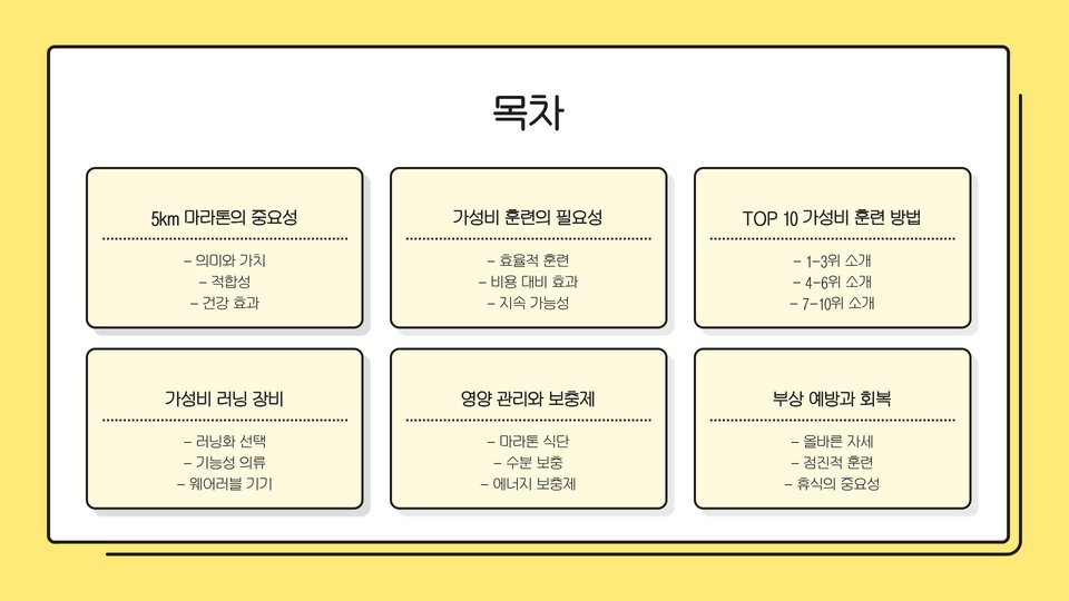 5키로 마라톤 훈련을 시작하는 것은 건강을 증진시키고 스트레스를 해소하는 좋은 방법입니다. 그러나 훈련 방법과 계획이 부족하면 목표를 달성하기 어려울 수 있습니다. 이 포스팅에서는 5키로 마라톤 훈련에 대한 정보를 제공하고, 가성비 좋은 훈련 방법을 TOP 10으로 소개하겠습니다. 이러한 정보는 초보자부터 경험자까지 모두에게 유용할 것입니다.