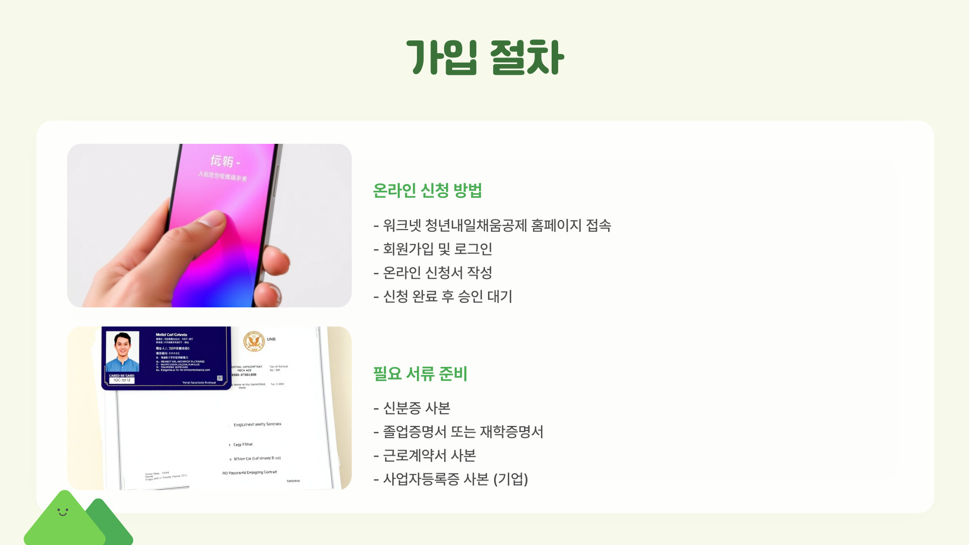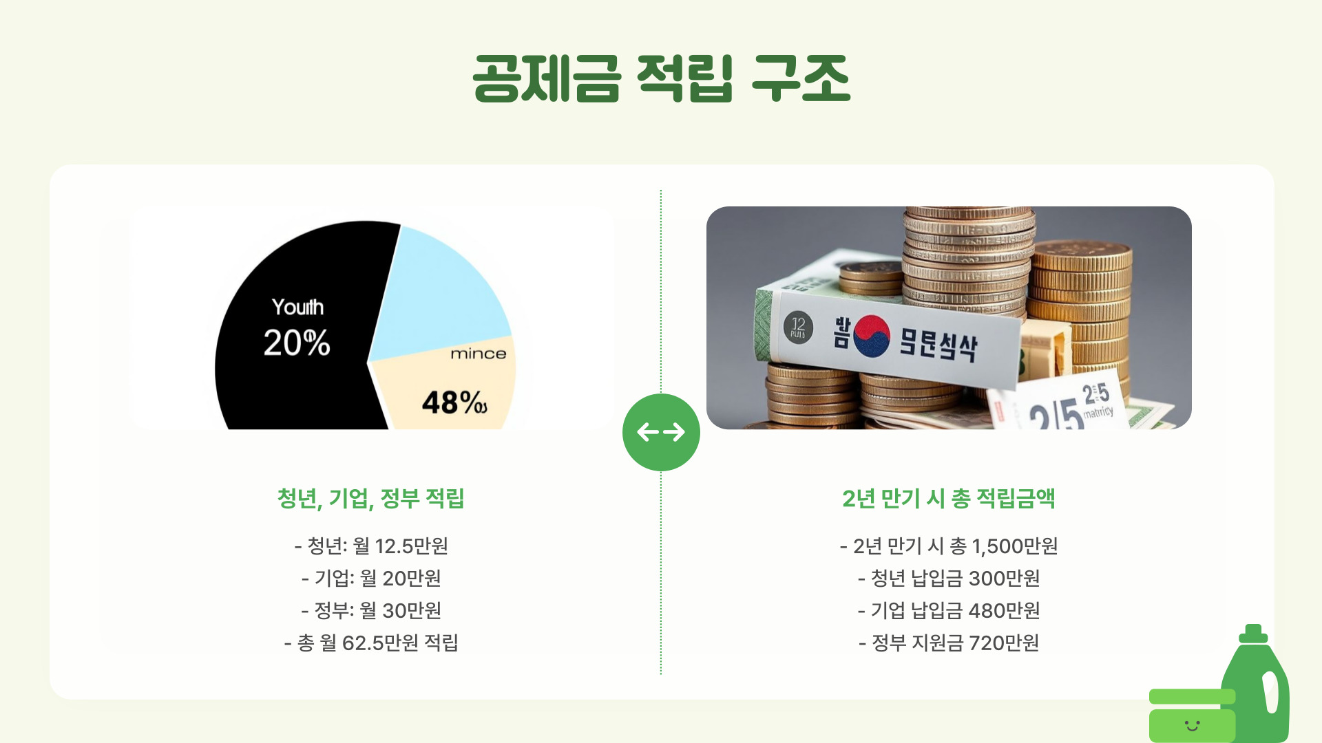 - 고용보험 가입 청년에게 적립금과 정부 지원금이 함께 제공됨