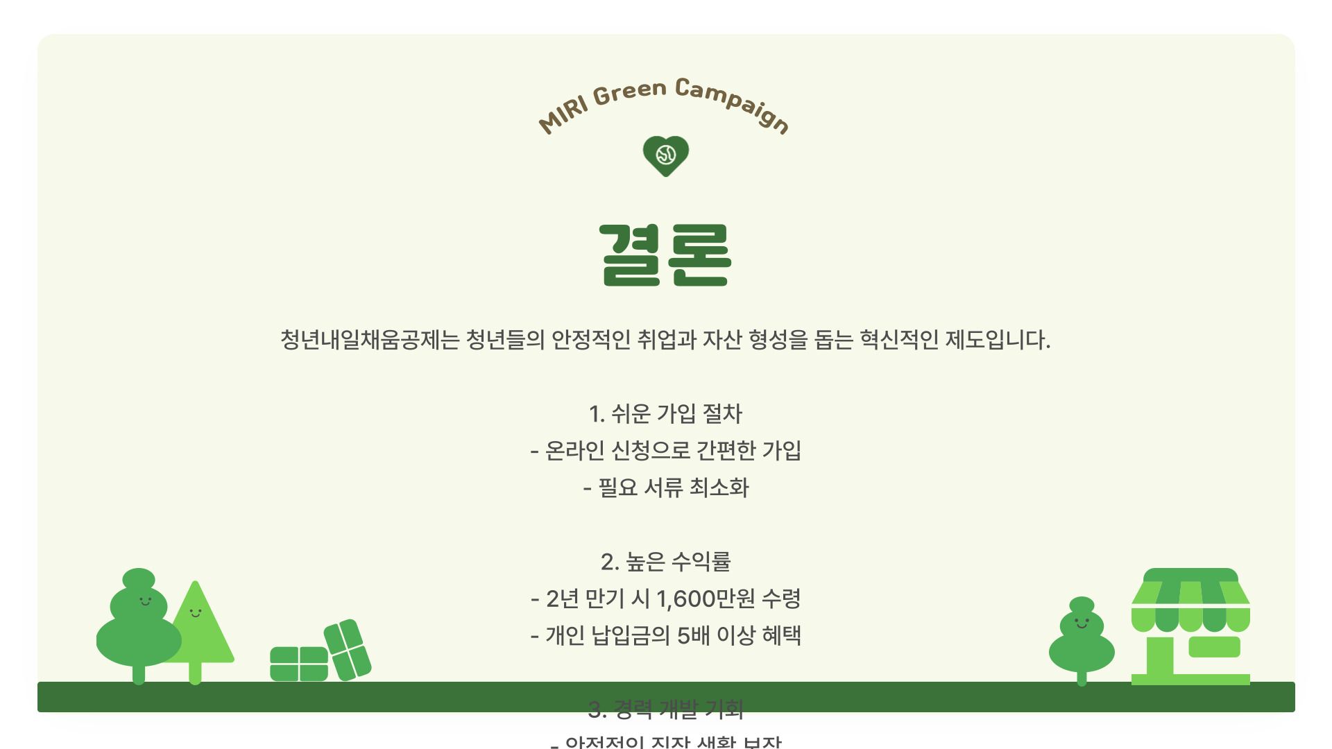- 청년내일체움공제를 통해 재정적 자립을 계획하자.