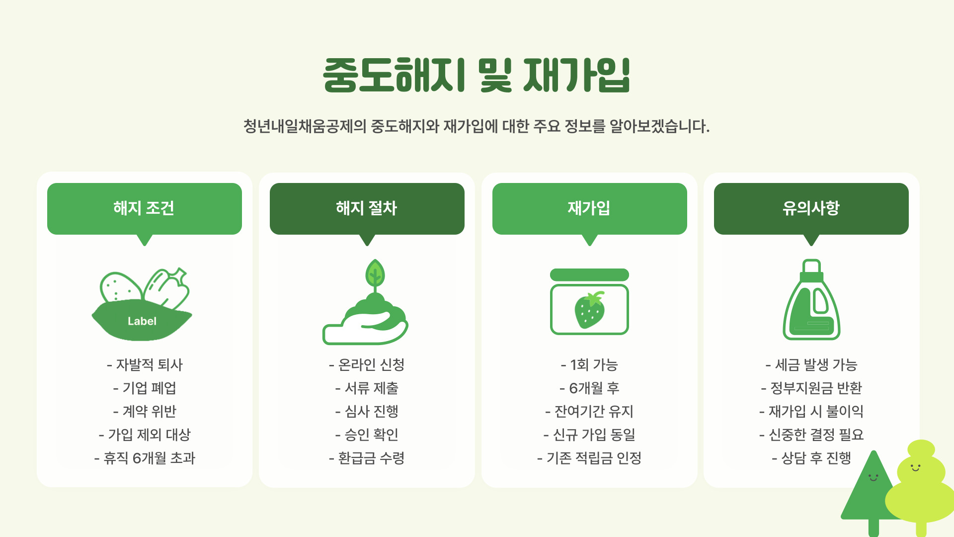 - 해지 시 원금 및 정부 지원금 일부 손실 가능성